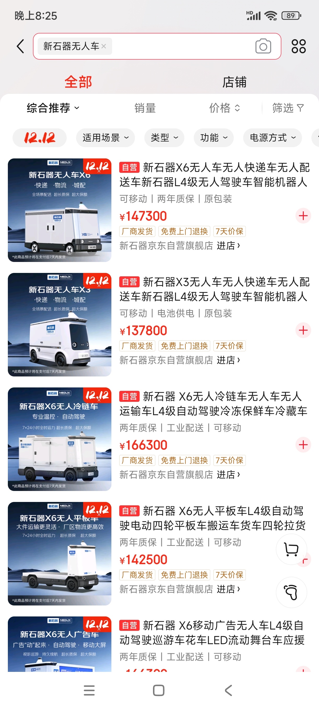京东都有无人驾驶物流车买了,按现在网上的数据,目前国内至少有3万辆以上无人驾驶物流车在行驶运营,并且还在产生收入,这个市场非常巨大,而且更容易比批准企业推广,这不像公交车或出租车,要处处考虑,安全第一,要求你不断测试,坚定看好这条赛道!