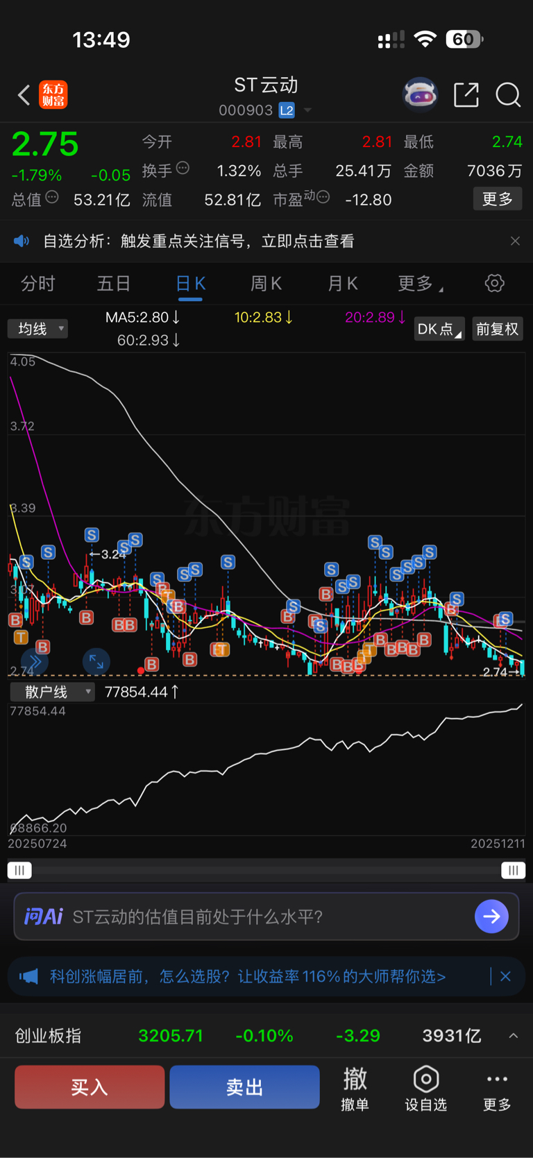 $ST云动(SZ000903)$ 你们撑住过两天我来抄低