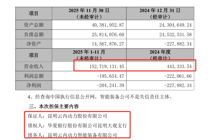 24年昆明云内动力智能装备收入才44万,25年11月收入已经达到1.53亿元。增长很快,同时也理解了为什么上市公司提供担保,因为订单充足,26年将是无人车订单爆发期!