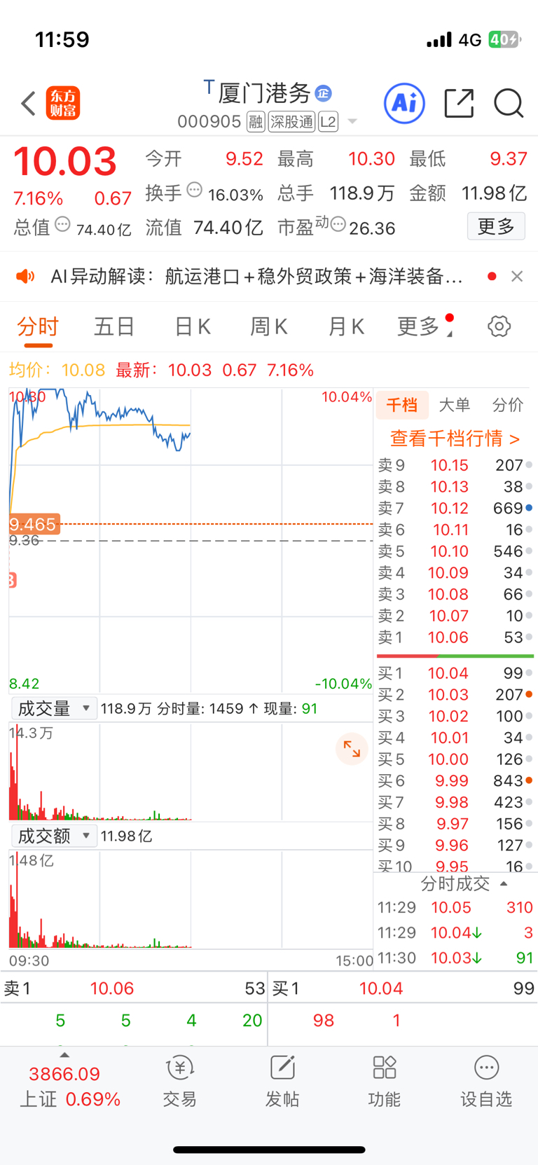 $厦门港务(SZ000905)$ 一觉睡醒后能涨停吗