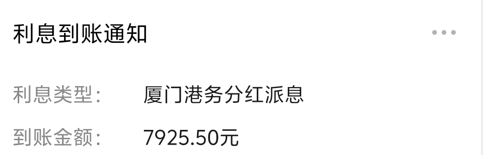 $厦门港务(SZ000905)$ 嚯嚯嚯,原来早就到账啦