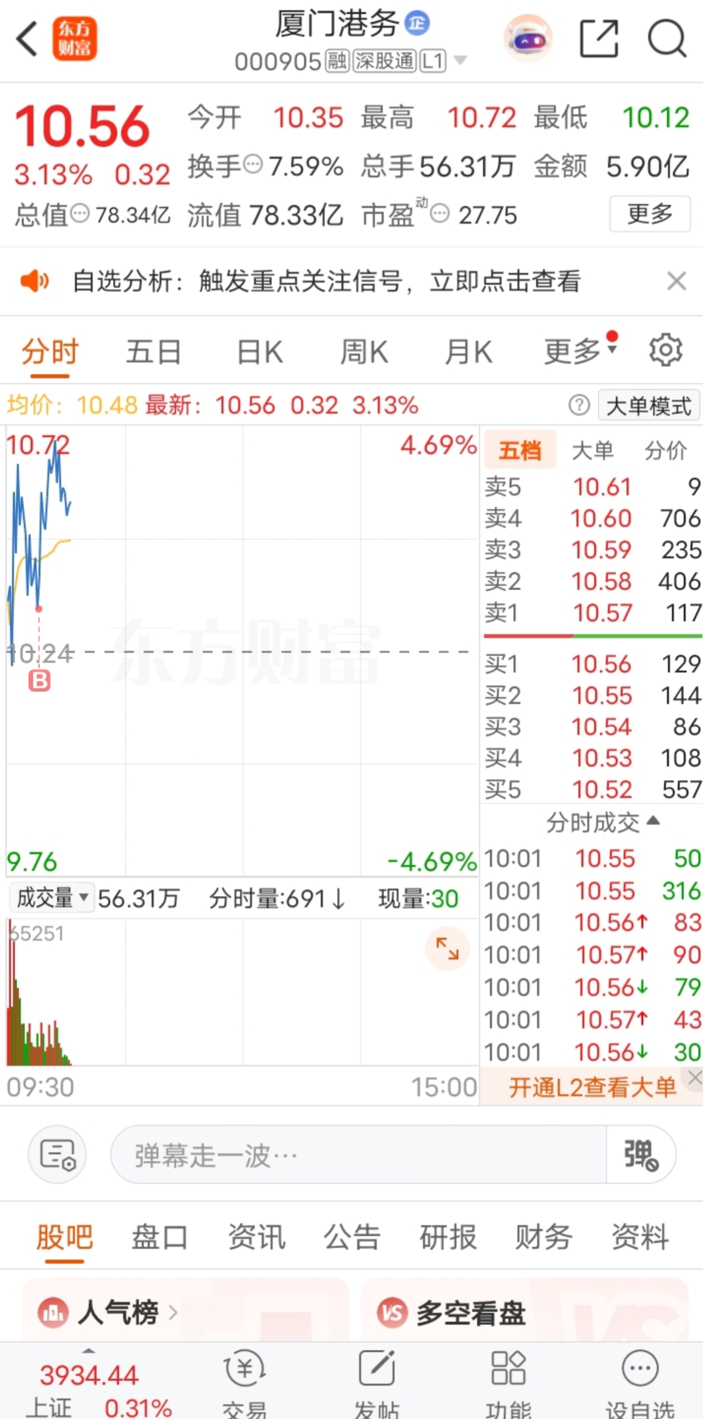 早盘介入了个股$厦门港务(SZ000905)$