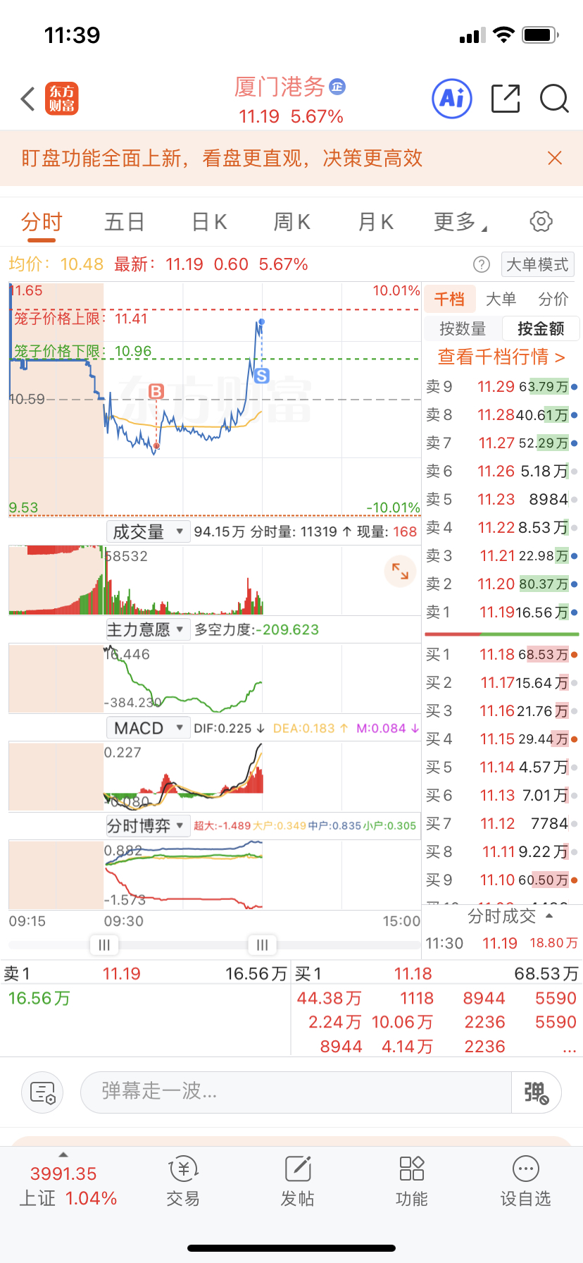$厦门港务(SZ000905)$ 背离了,先出点吧!挂高卖出都被吃掉,看来是量化