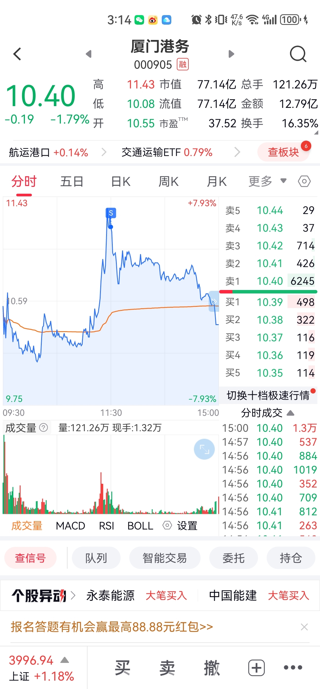 $厦门港务(SZ000905)$ 赚几个点跑了,祝留下的兄弟发财
