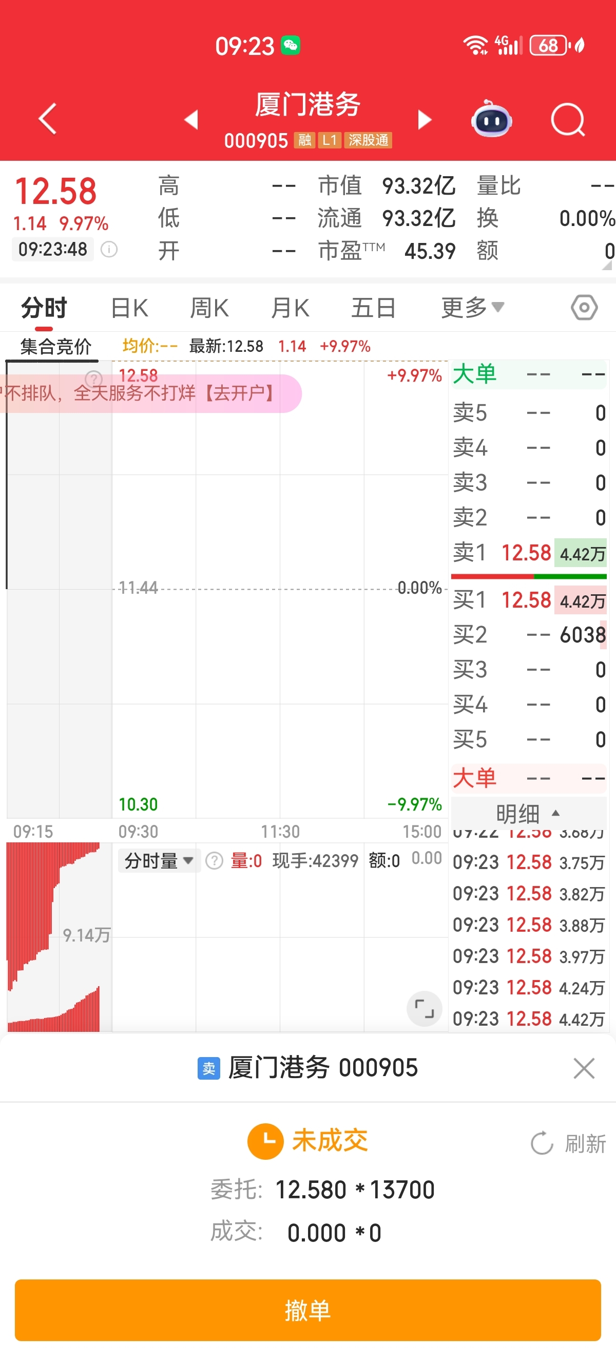 判断正确,不够还是反应慢了一点,不应该挂涨停价出的