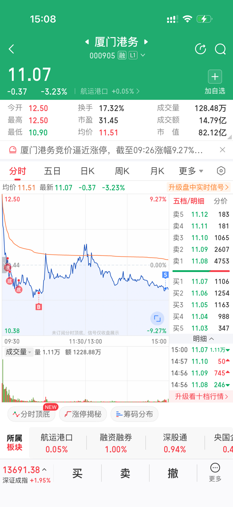 $厦门港务(SZ000905)$ 我现在五个点都看不上了,起步就是十多个点