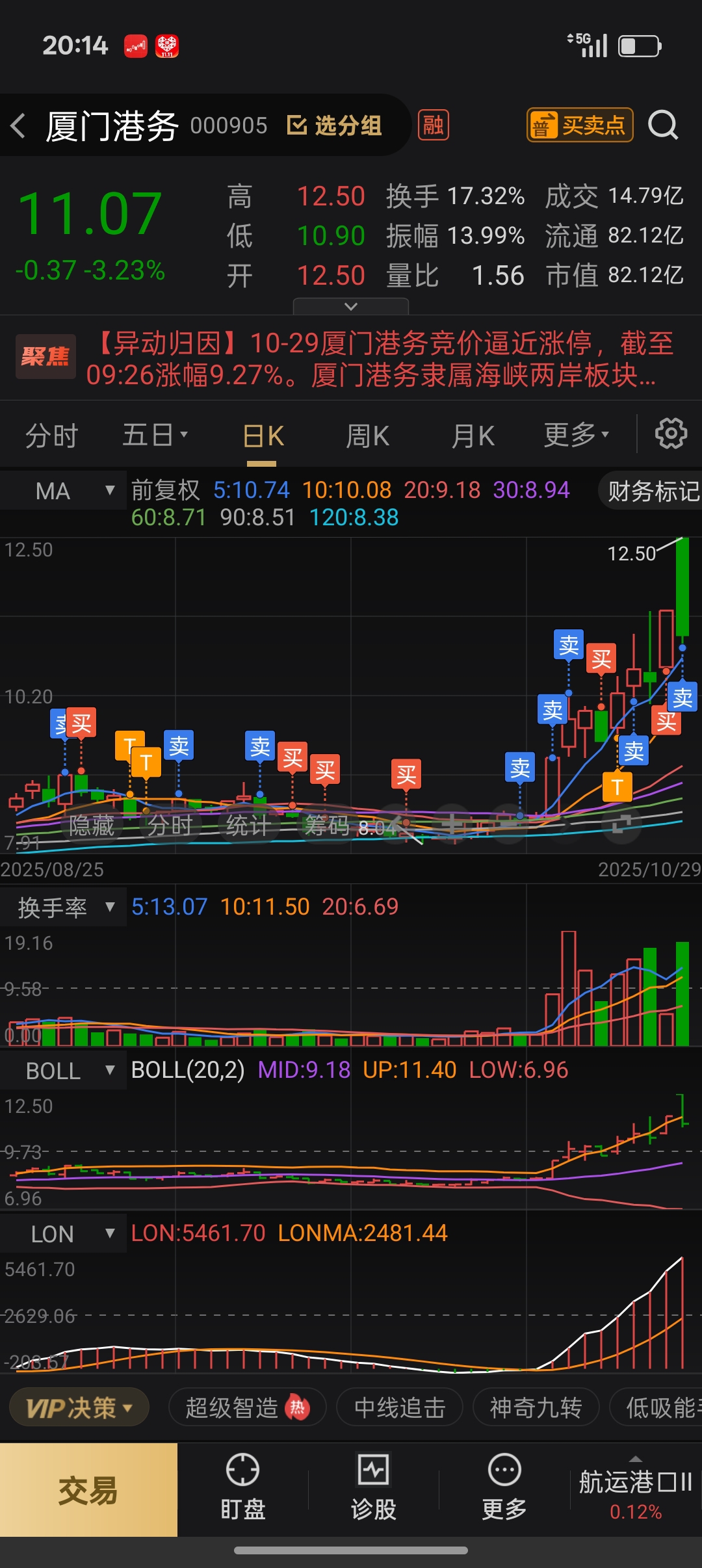 $厦门港务(SZ000905)$ 这票不好操作,每次都是买在高点,卖在低点,在里面快一年了,汤都没有喝到一口