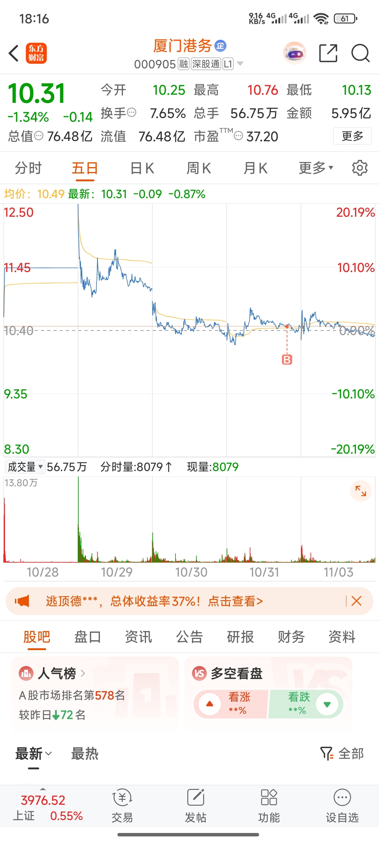 $厦门港务(SZ000905)$ 今天没动,等明天看情况