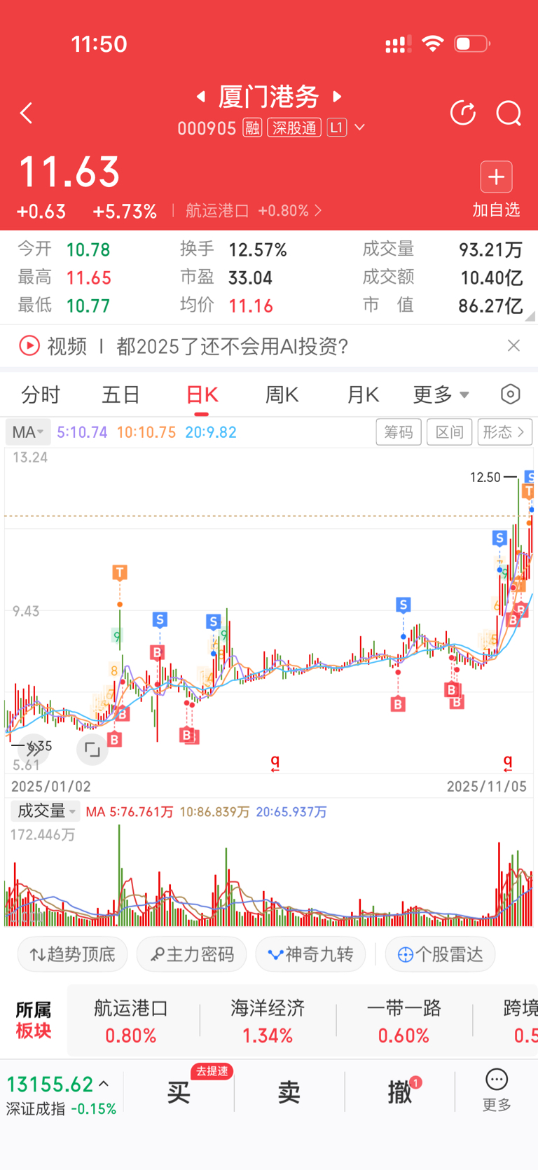 $厦门港务(SZ000905)$ 哈哈哈出了一半