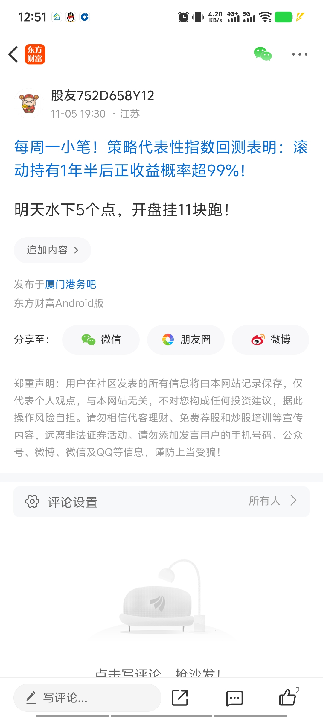 温馨提示: 1.根据《证券法》规定,禁止编造、传播虚假信息或者误导性信息,扰乱证券市场;2.用户在本社区发表的所有资料、言论等仅代表个人观点,与本网站立场无关,不对您构成任何投资建议。用户应基于自己的独立判断,自行决定证券投资并承担相应风险。《东方财富社区管理规定》