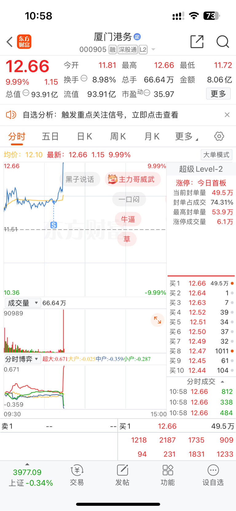$厦门港务(SZ000905)$ 高点都没走,下来给清了