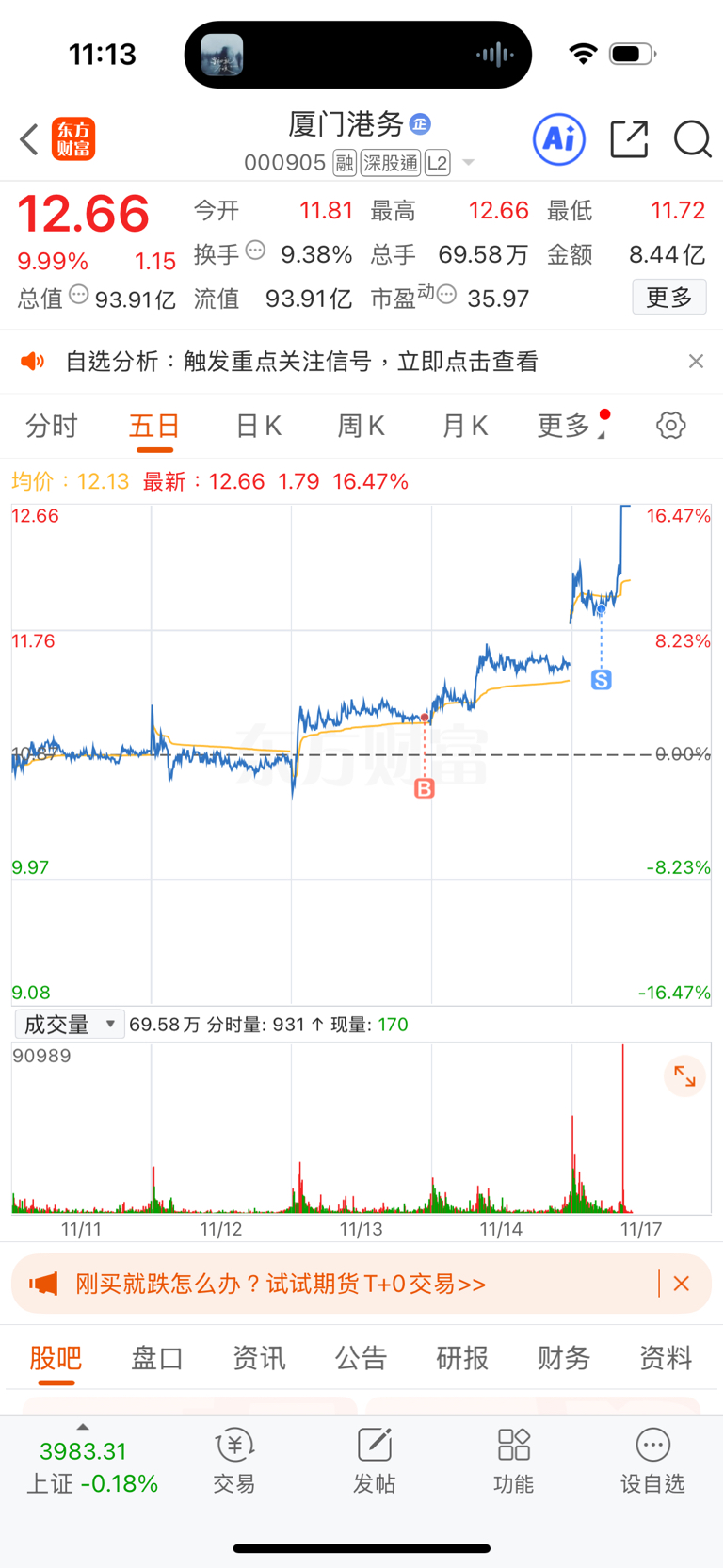 $厦门港务(SZ000905)$ 有几句怎么说来着,不要太努力盯盘,不然容易t飞
