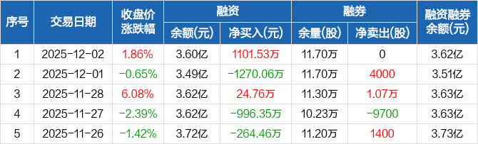 厦门港务:融资净买入1101.53万元,融资余额3.6亿元(12-02)