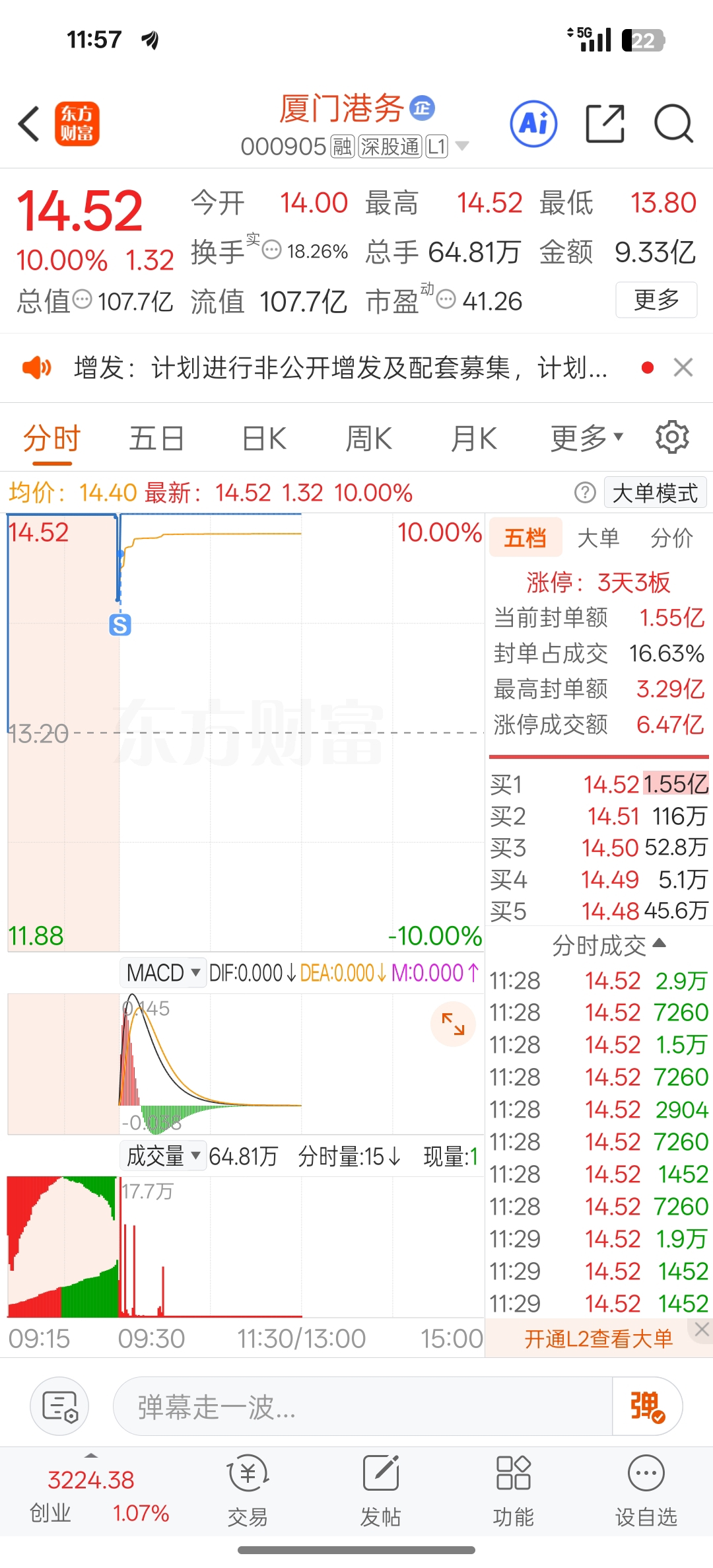 $厦门港务(SZ000905)$ 打板没看那么快,卖飞到时很快 干嘛要高开不直接一字板