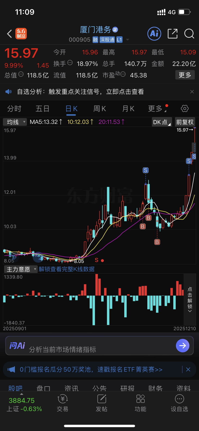 $厦门港务(SZ000905)$ 卖完了,感谢厦门港务