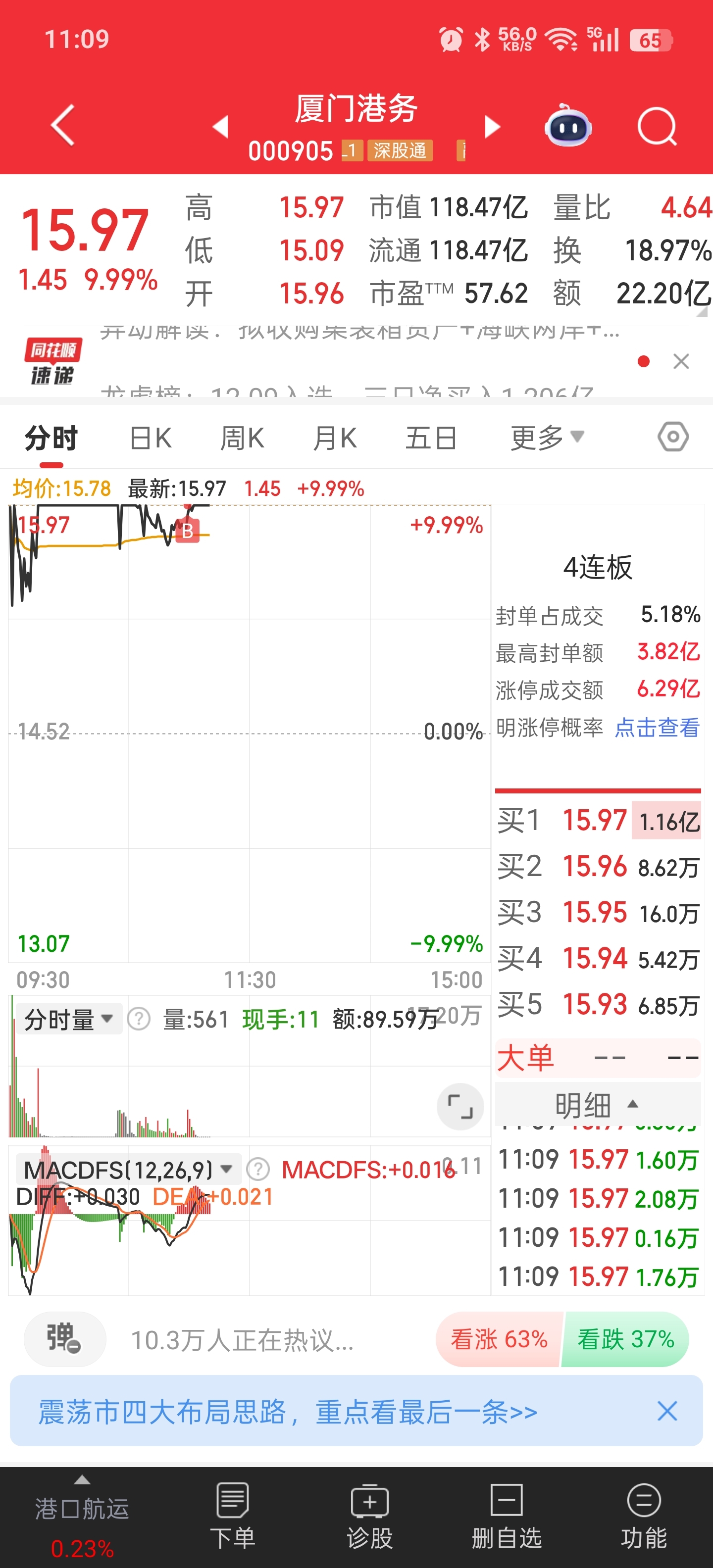 $厦门港务(SZ000905)$ 今天真难玩啊
