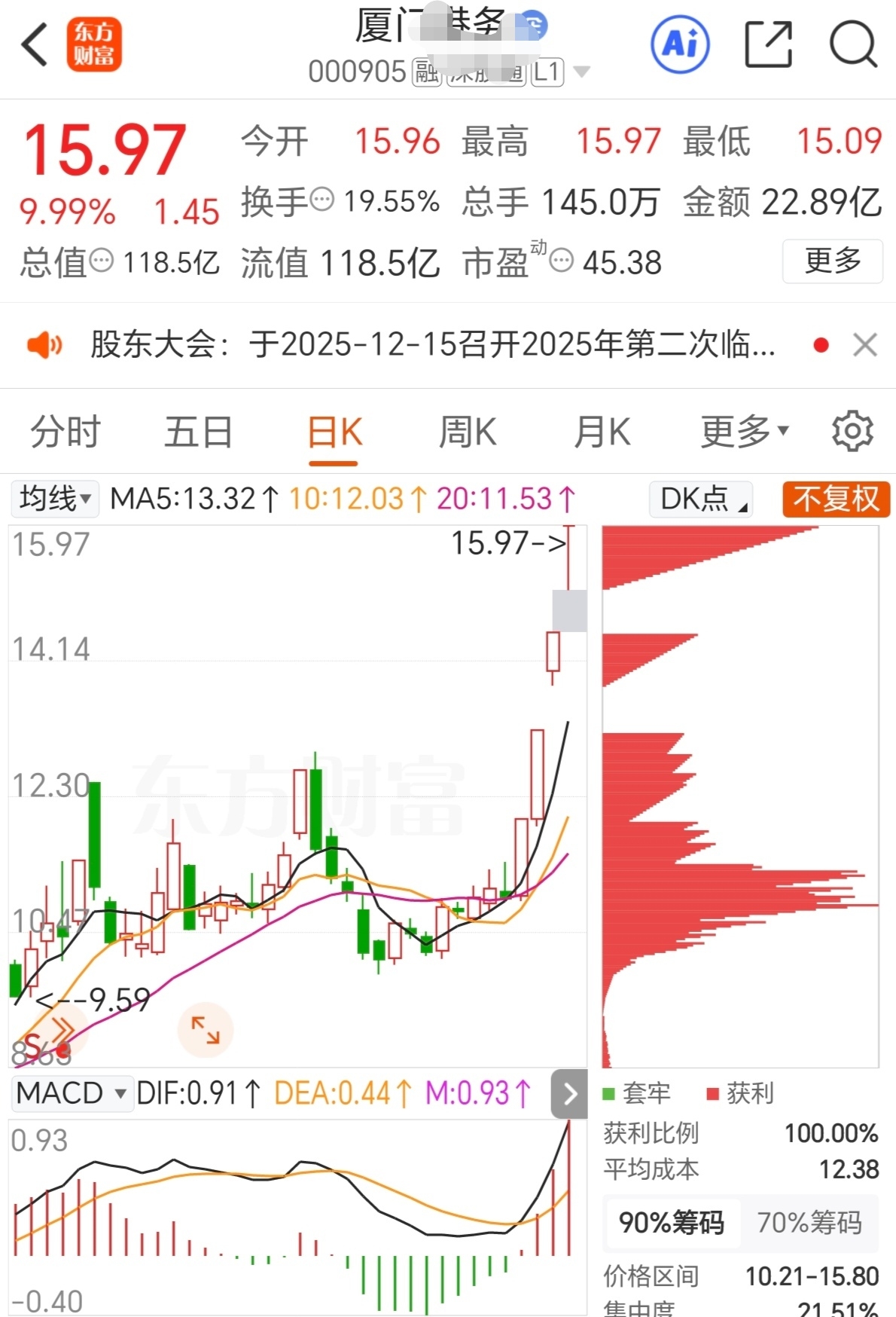 $厦门港务(SZ000905)$ 央企改革、海峡两岸并购重组股,底部筹码坚定持股,主力志在长远!