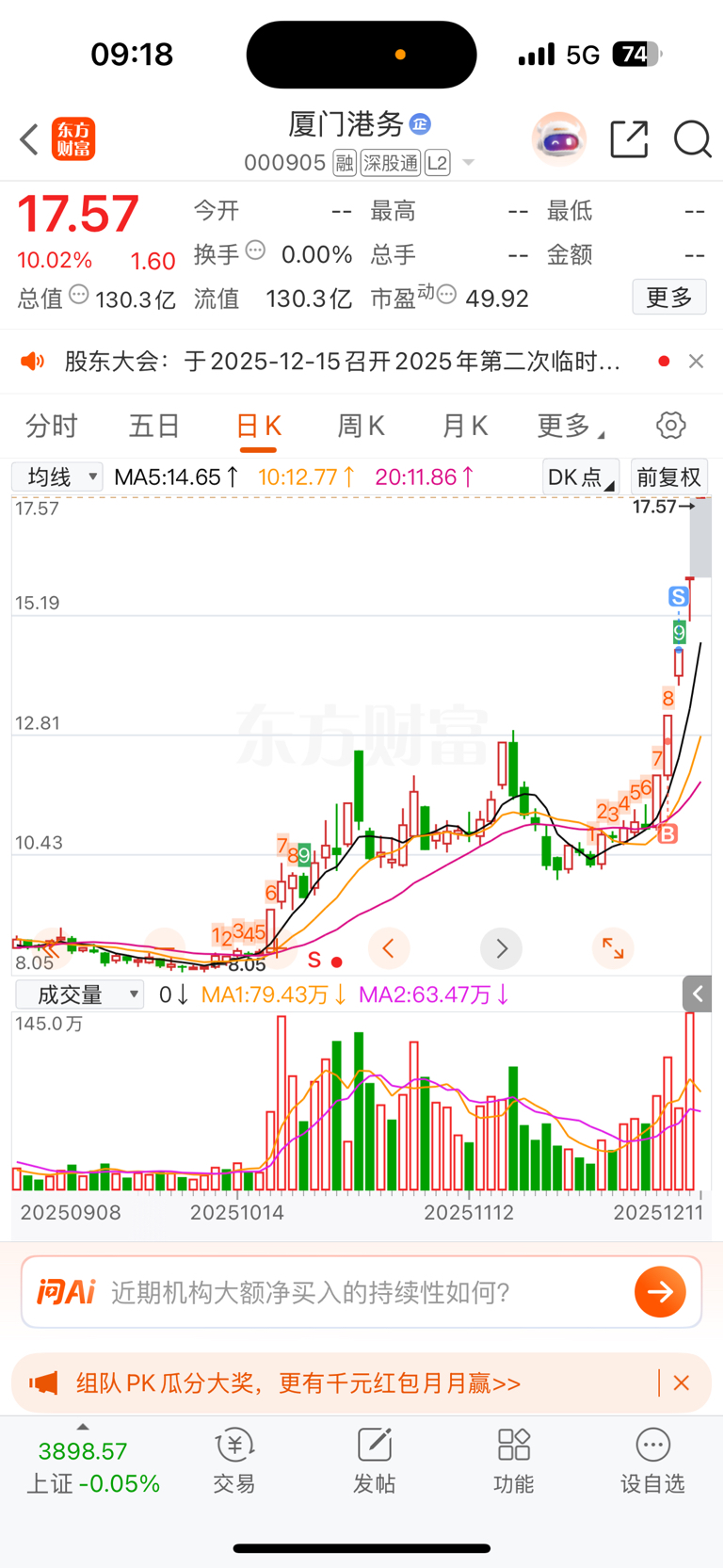 $厦门港务(SZ000905)$ 的这样涨不是股性不好吗
