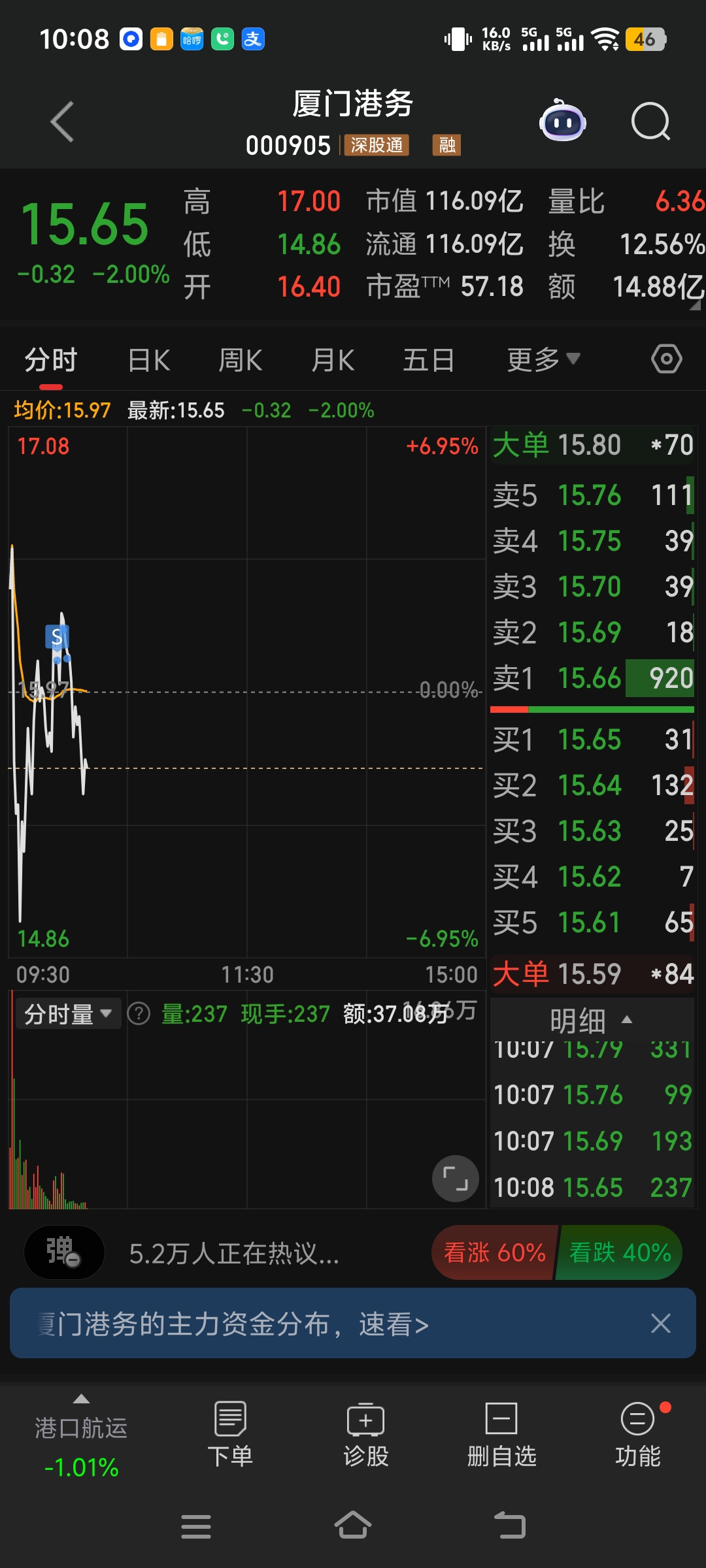 $厦门港务(SZ000905)$ 恶心人的主力,早上拉升,非得砸盘,好好的趋势被你玩坏了,格局不了一点。