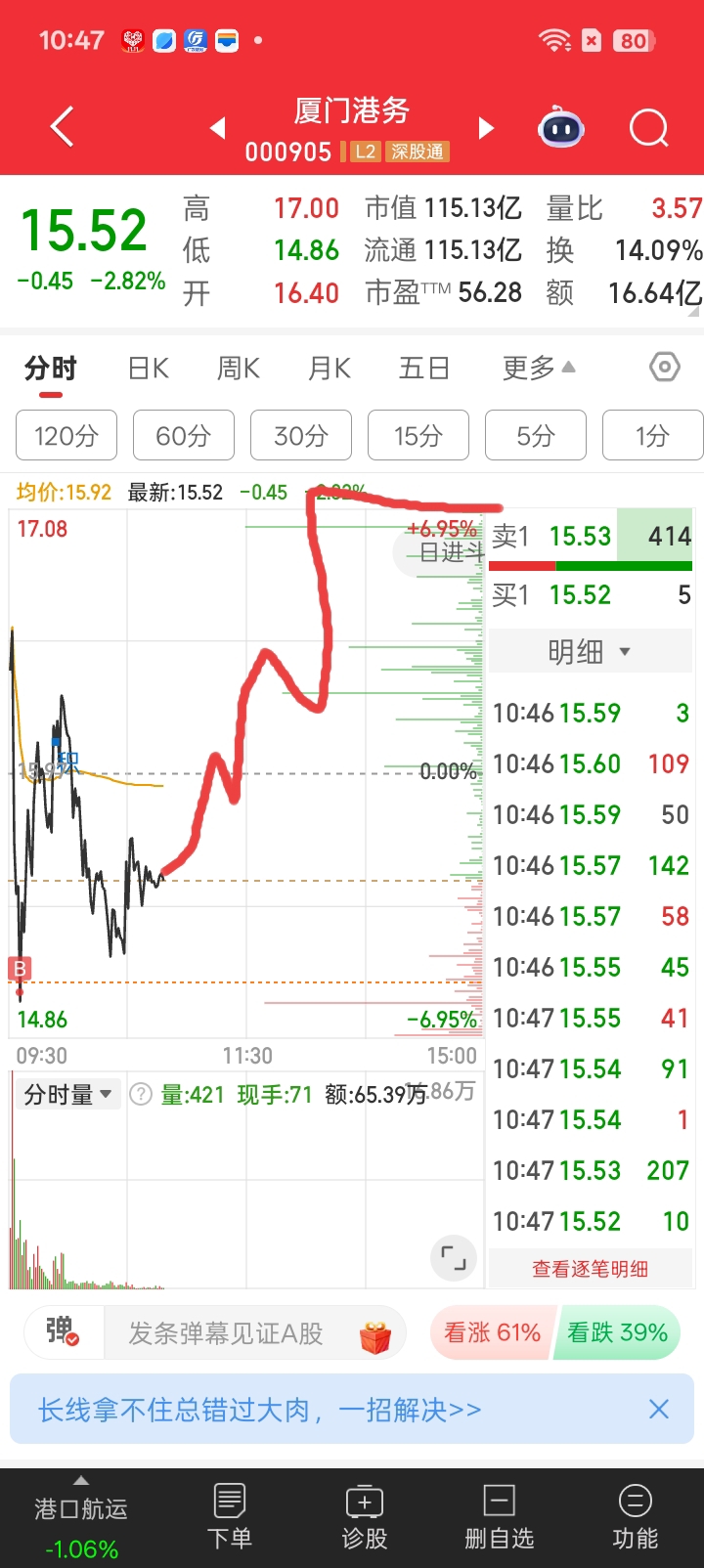 $厦门港务(SZ000905)$ 今天厦门港务的走势,十之八九