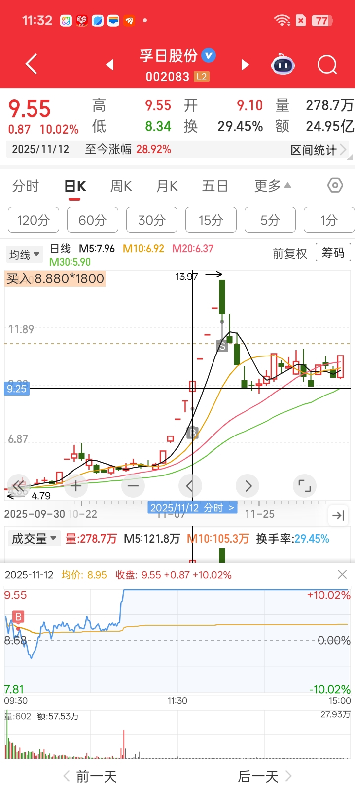 参考孚日股份走势,连续九连板涨停,现在还在山腰