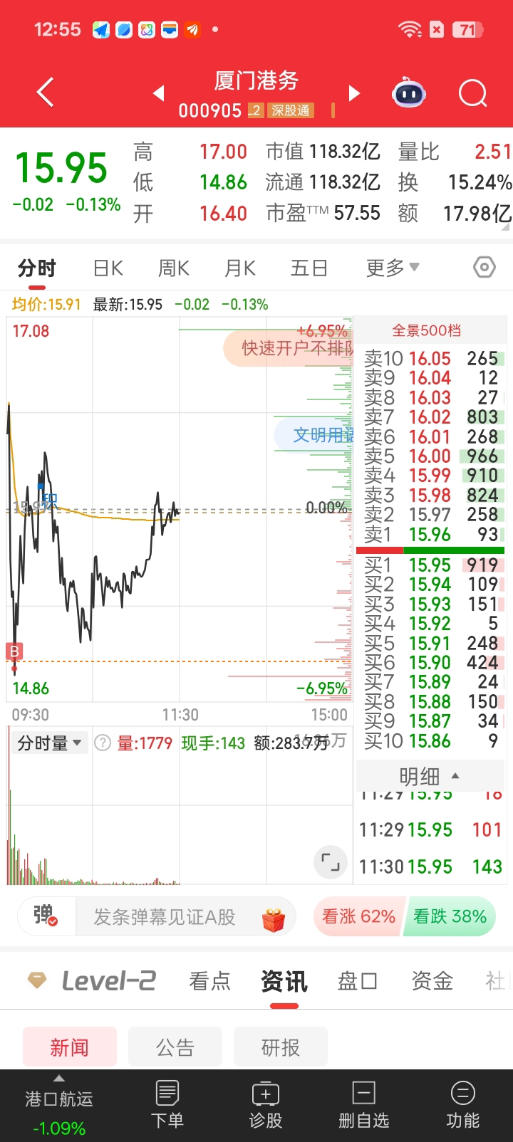 $厦门港务(SZ000905)$ 收盘价:17.57元
