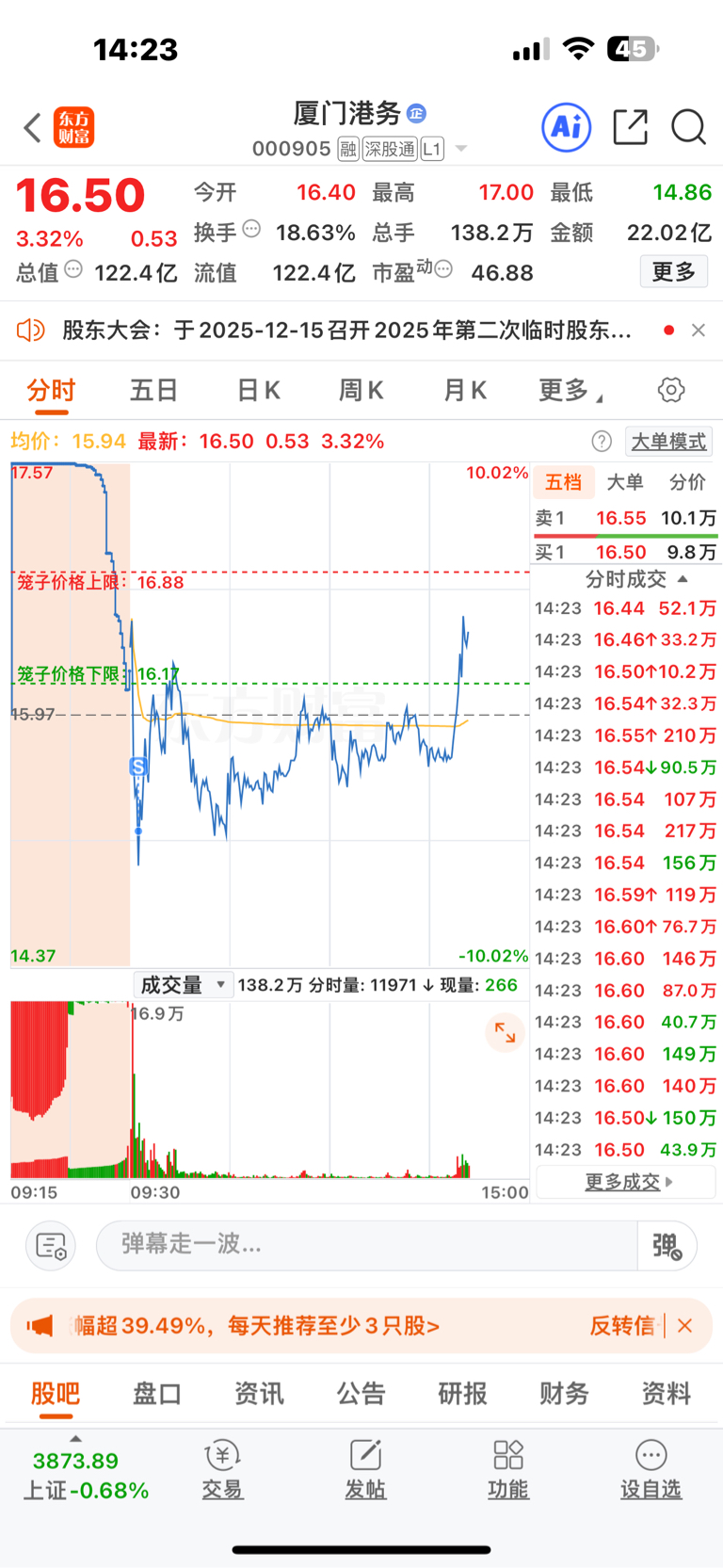 $厦门港务(SZ000905)$ 妈的,最低点被冼走,恶庄!