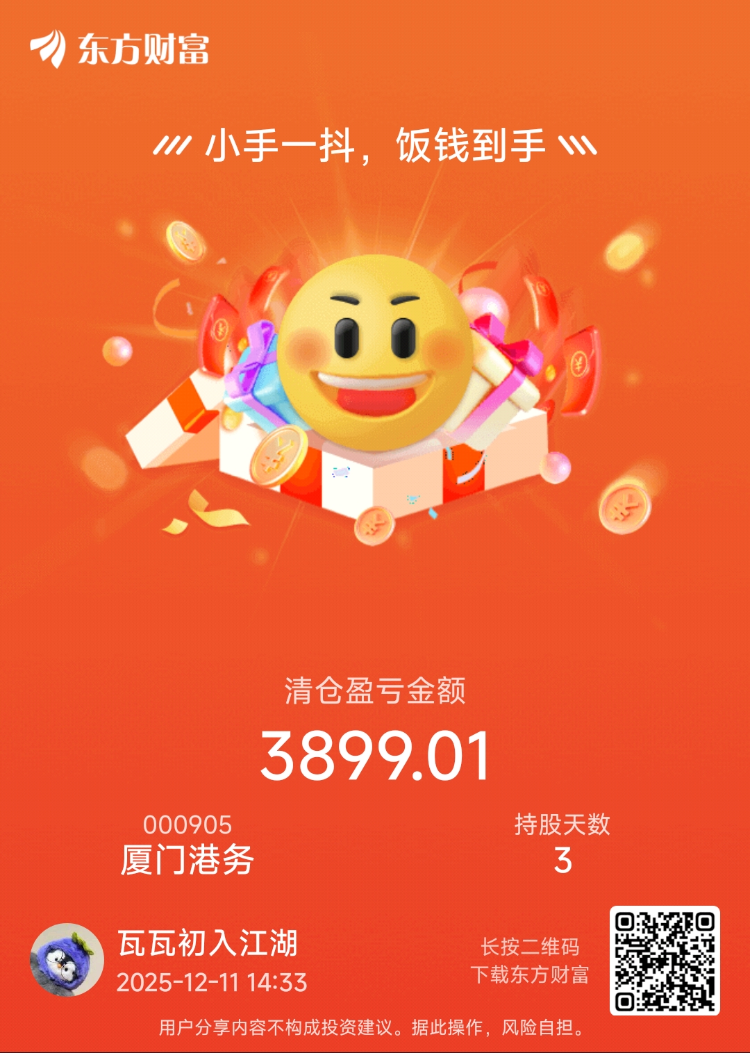 $厦门港务(SZ000905)$ 感谢感谢 第一次吃到肉