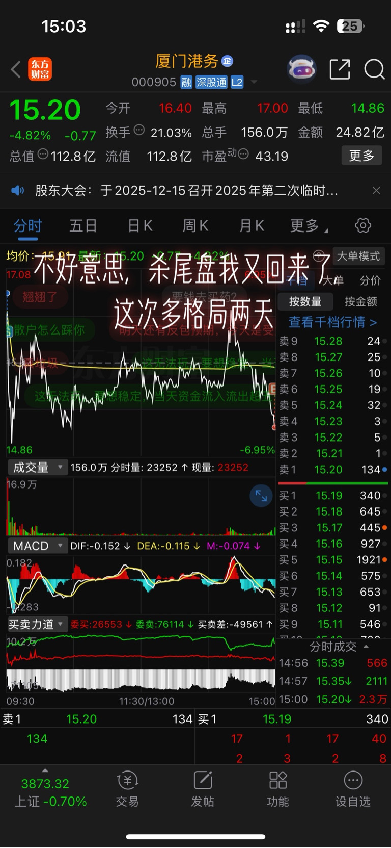 $厦门港务(SZ000905)$ 兄弟们帮我看下明天怎样