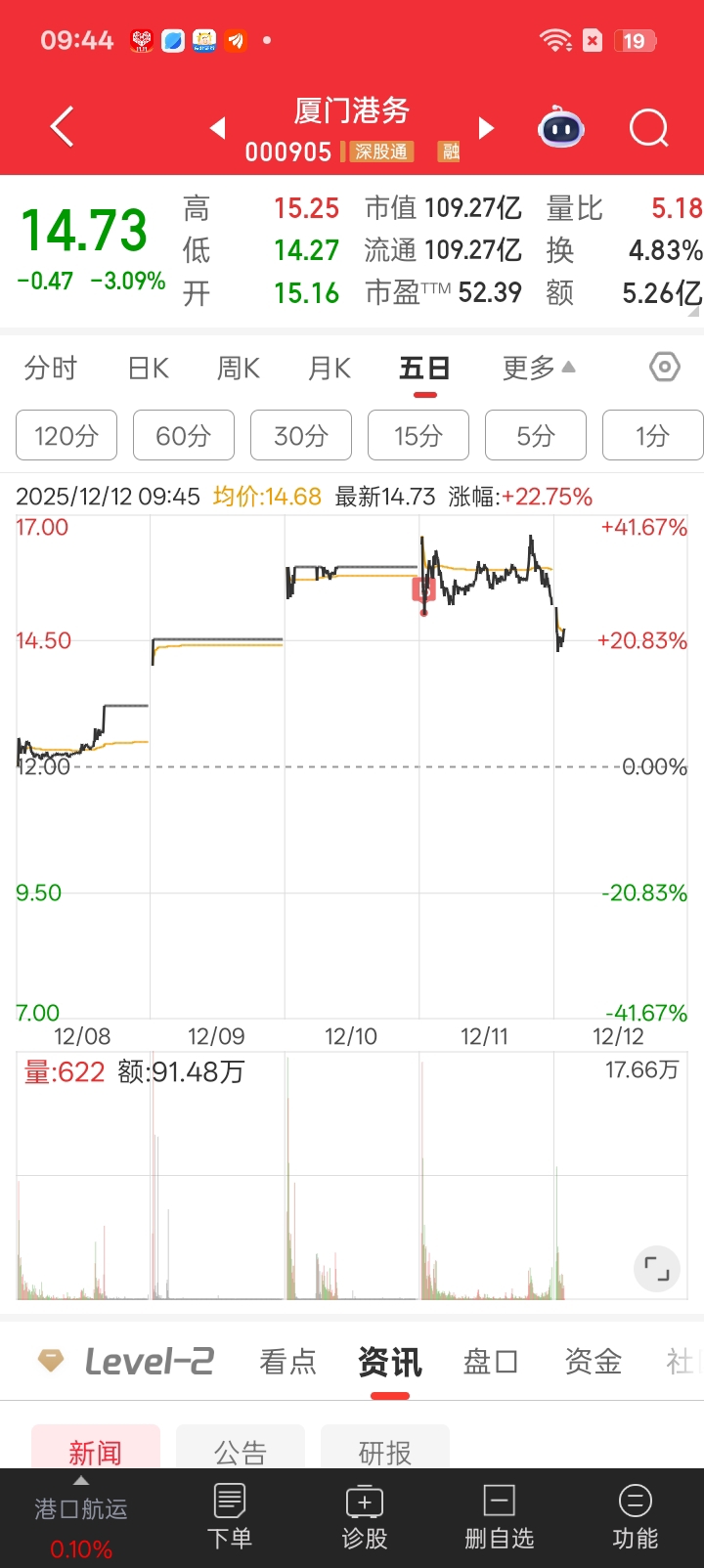 $厦门港务(SZ000905)$ 反正我全仓,我保证今天一股不卖。。