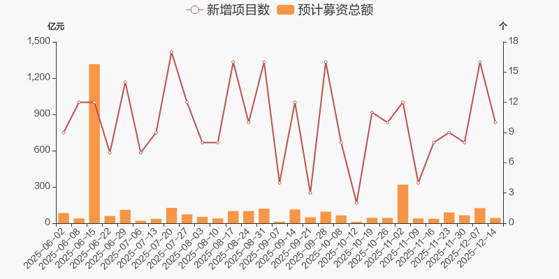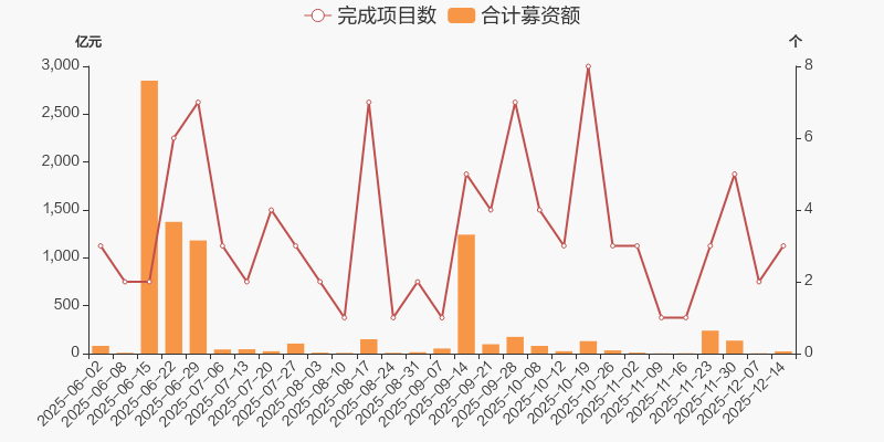 本周(2025/12/07-2025/12/14)共新增10例定增预案,预计募集资金共计43.25亿元,新增项目数量环比减少6例,预计募资总额环比降低81.83亿。