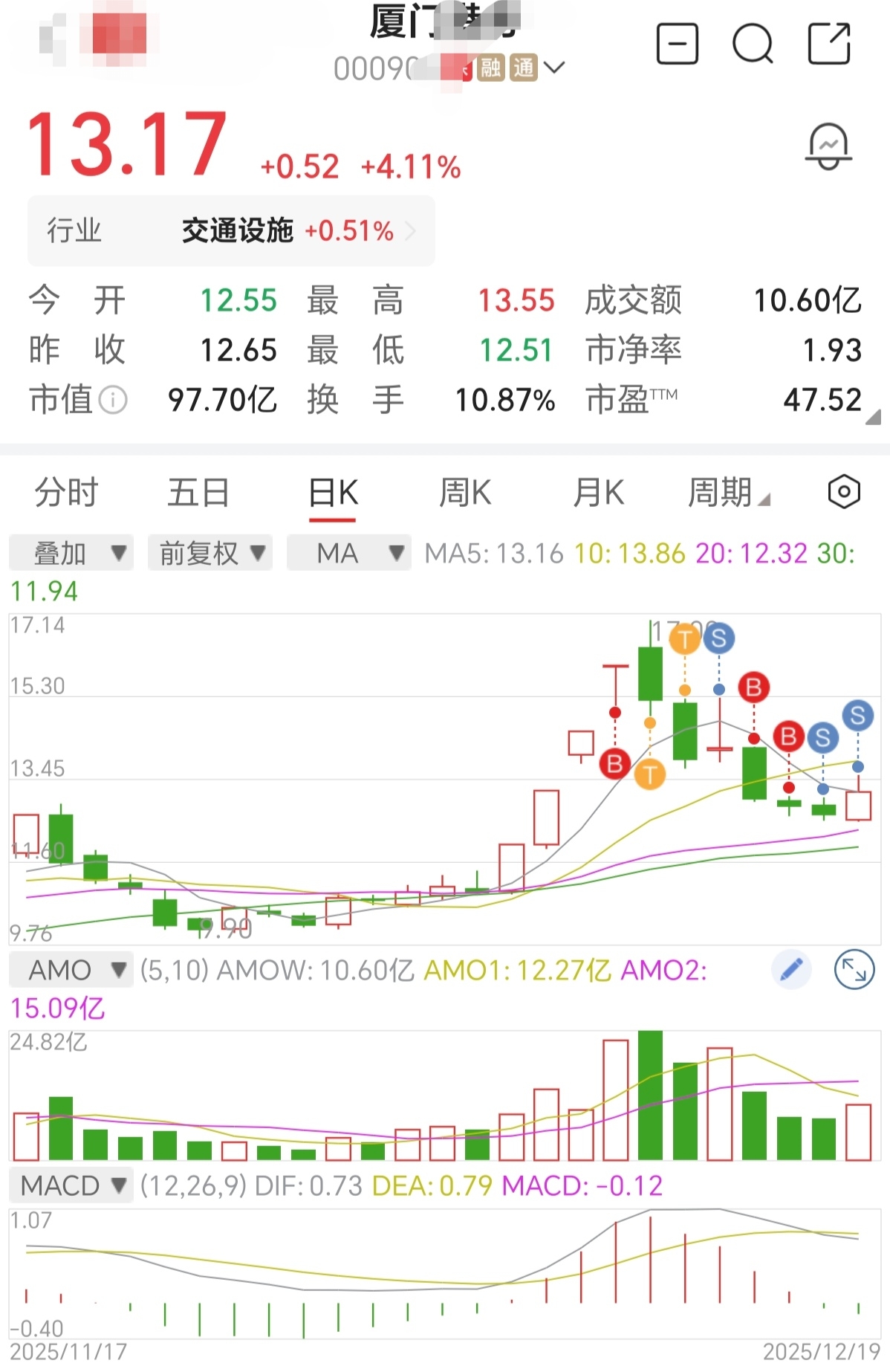 $厦门港务(SZ000905)$ 今天被震出来了,不知道是对还是错!