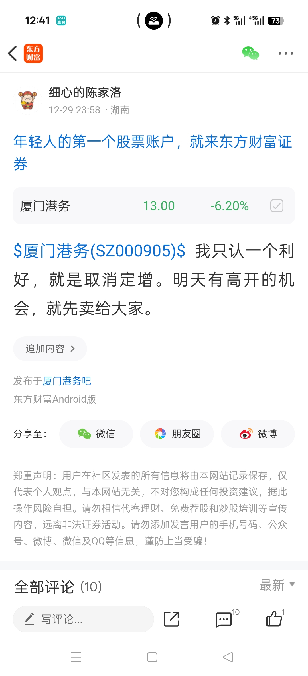 温馨提示: 1.根据《证券法》规定,禁止编造、传播虚假信息或者误导性信息,扰乱证券市场;2.用户在本社区发表的所有资料、言论等仅代表个人观点,与本网站立场无关,不对您构成任何投资建议。用户应基于自己的独立判断,自行决定证券投资并承担相应风险。《东方财富社区管理规定》