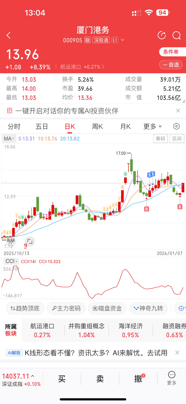 $厦门港务(SZ000905)$ 能不能连板儿?