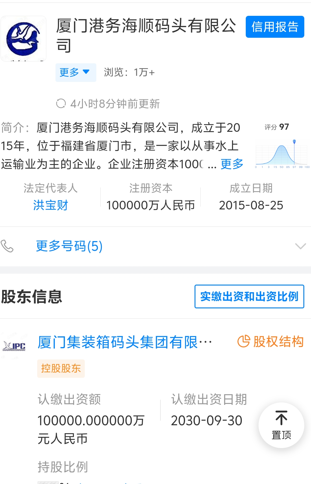 海顺码头跟顺飞一样顺,嚯嚯嚯,夸脏哦。顺飞查了下,是重组的厦门集装箱码头集团认缴