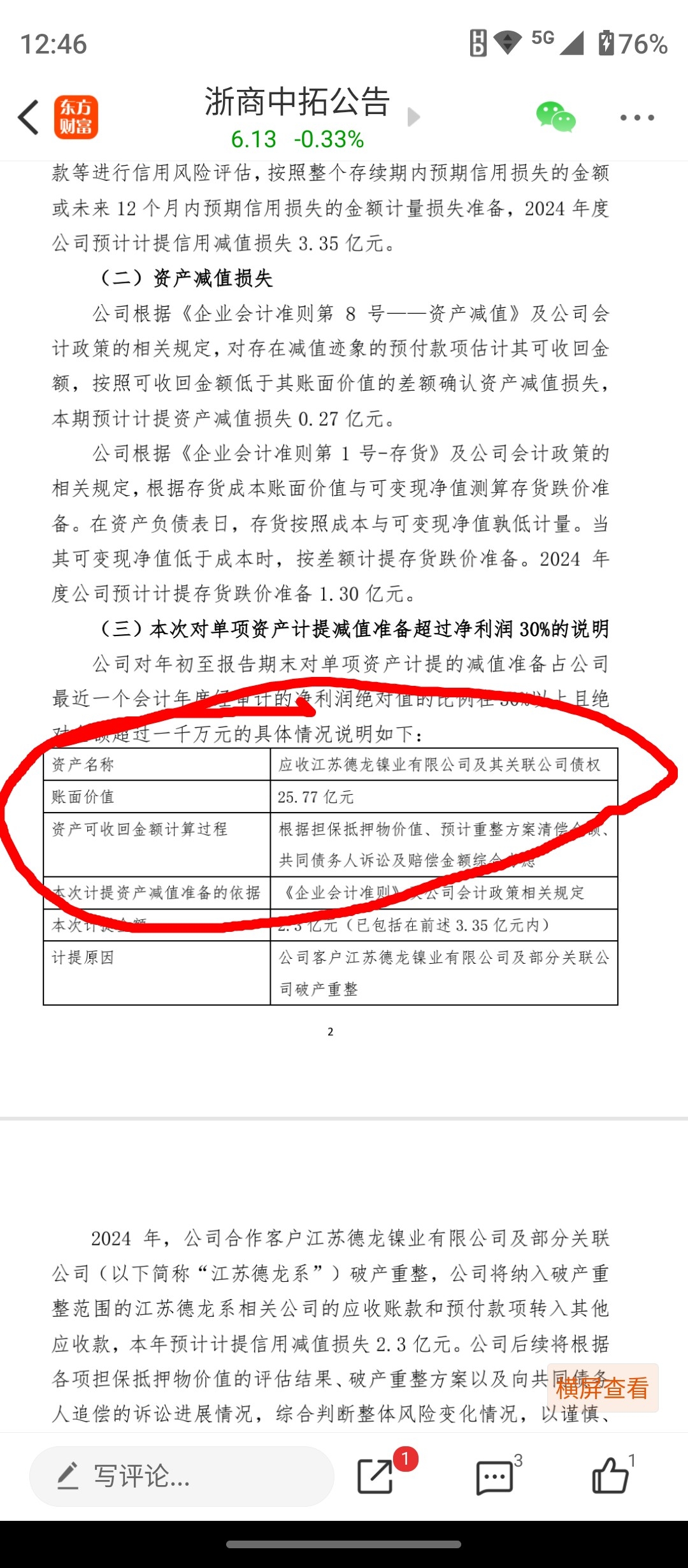 暖阳先生一直说中拓在江苏德龙债权是21亿元,请暖阳查询中拓2025年1月24号《关于计提2024年坏账准备的公告》,看看,债权25.77亿元。