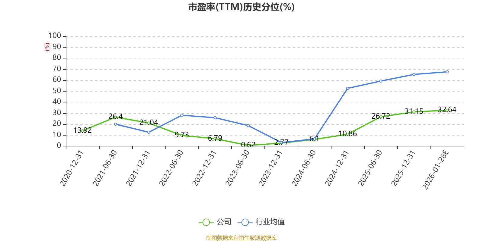 市盈率、市净率为负时,不显示当期分位数,会导致折线图中断。
