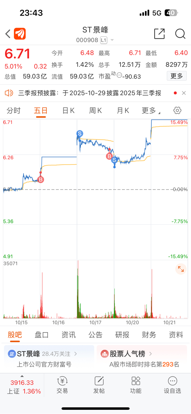 $ST景峰(SZ000908)$ 对不起 我是T狗 我错了