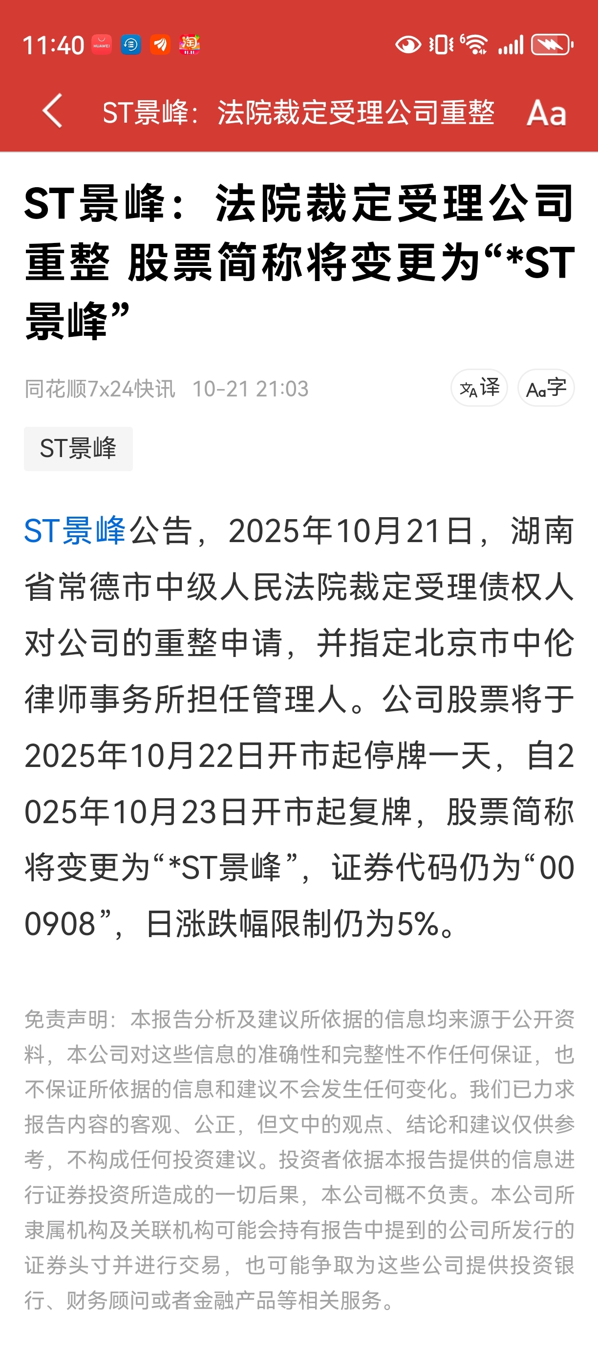 $ST景峰(SZ000908)$ 怎么回事,又回到了解放前