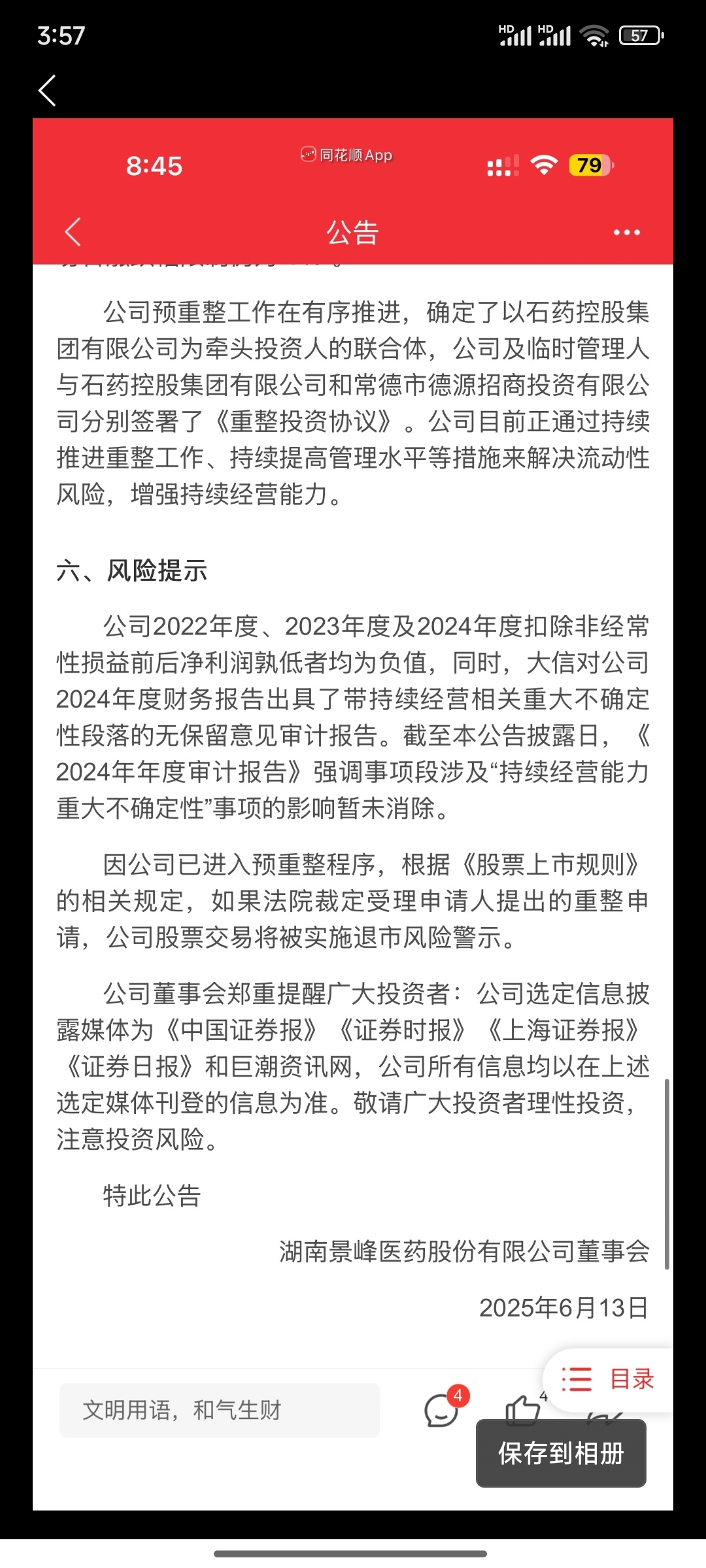 $ST景峰(SZ000908)$ 法院受理重整的都会带星,这是正常流程。