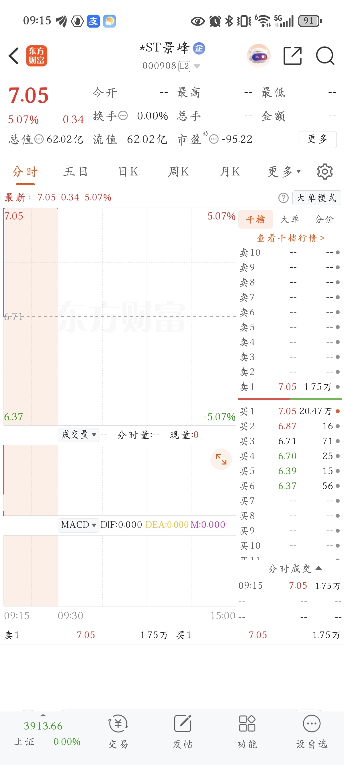 $*ST景峰(SZ000908)$ 涨停迟早的事,上午天地洗盘结束,下午拉至涨停收盘