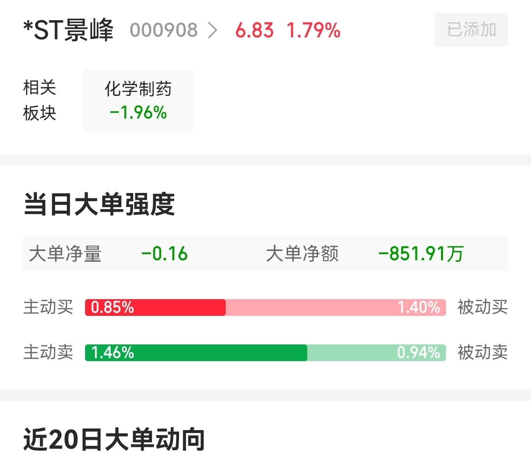 $*ST景峰(SZ000908)$ 主力卖了一些,