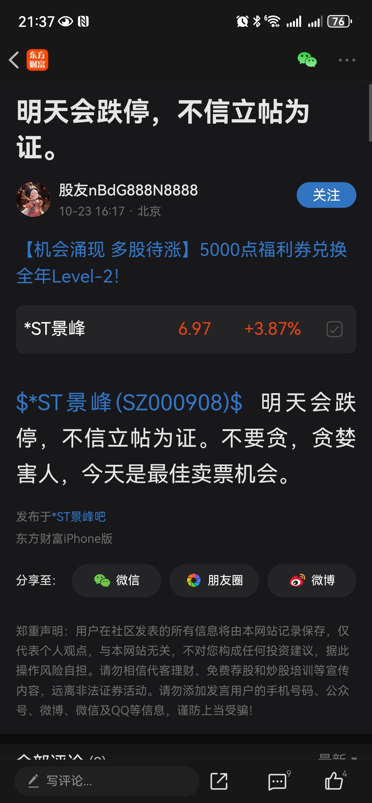 温馨提示: 1.根据《证券法》规定,禁止编造、传播虚假信息或者误导性信息,扰乱证券市场;2.用户在本社区发表的所有资料、言论等仅代表个人观点,与本网站立场无关,不对您构成任何投资建议。用户应基于自己的独立判断,自行决定证券投资并承担相应风险。《东方财富社区管理规定》