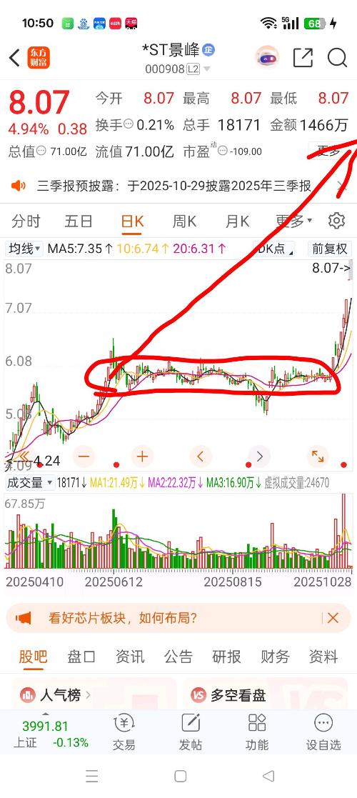 $*ST景峰(SZ000908)$ 唱空的韭菜鸡蛋呢?一直唱空路条到手要像三圣?中装?宁科?一样大跌的人呢?这个都看不懂还吵个鸭儿呀??