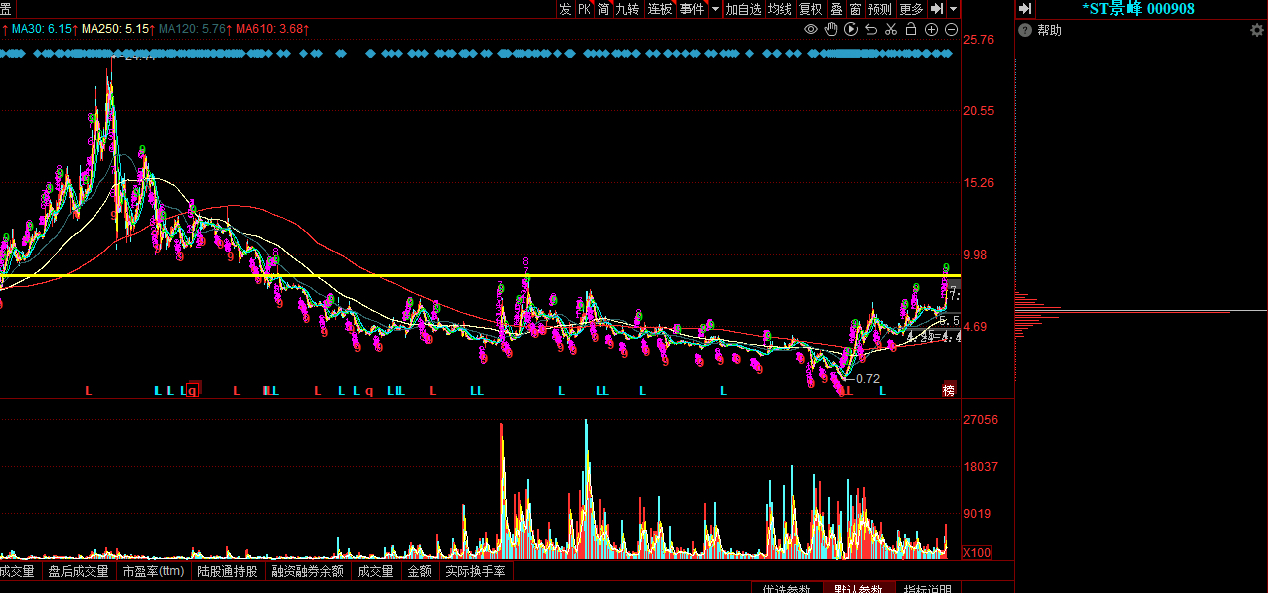 $*ST景峰(SZ000908)$ 技术面日线周线的大型头肩底结构,横有多长竖有多高,量能密集区都已踩在脚下,前高8.45明日一过则天高任鸟飞!无论从股东人数骤减半还是基本面重整确定性,亦或是消息面廉总卡点进场资本运营,都预示着接下来拿下24.44历史高点只是时间长短问题!石药集团赋能,一切皆有可能!中长线非卖品!