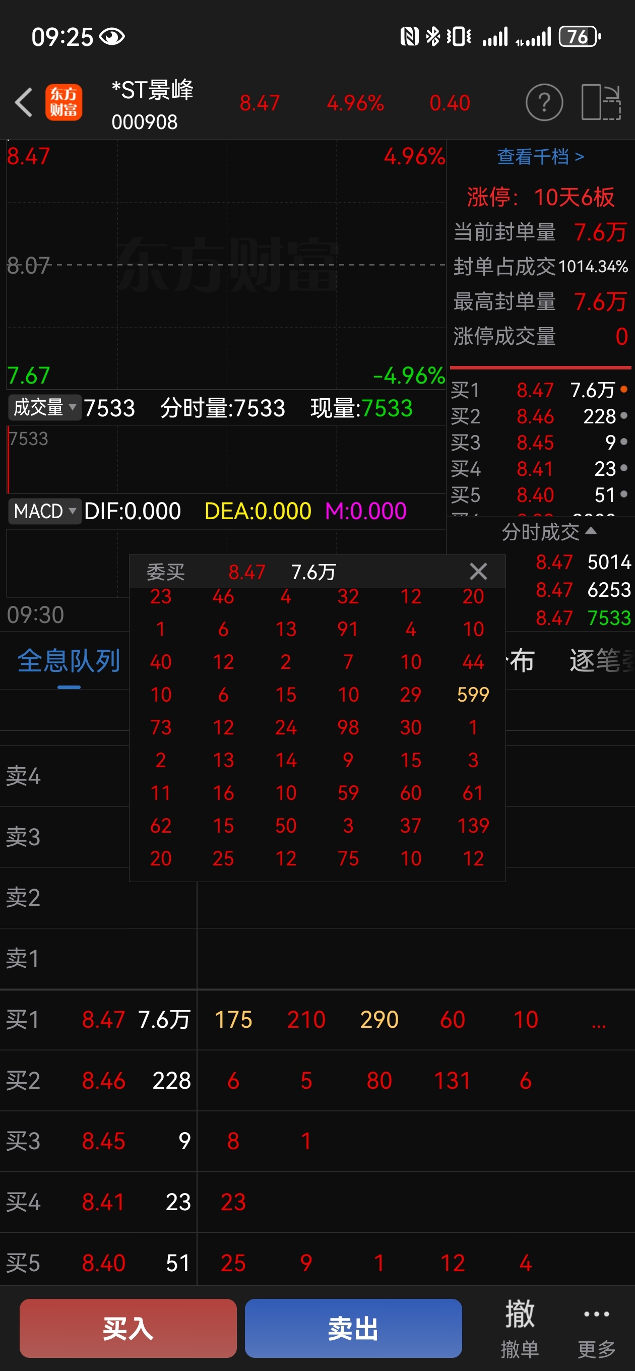 $*ST景峰(SZ000908)$ 我前面只有五千多手了