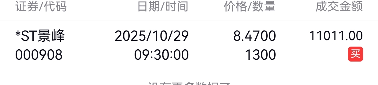 $*ST景峰(SZ000908)$ 昨天佣金宝和广发都挂的1号委托单,佣金宝成交了!广发还在排队!