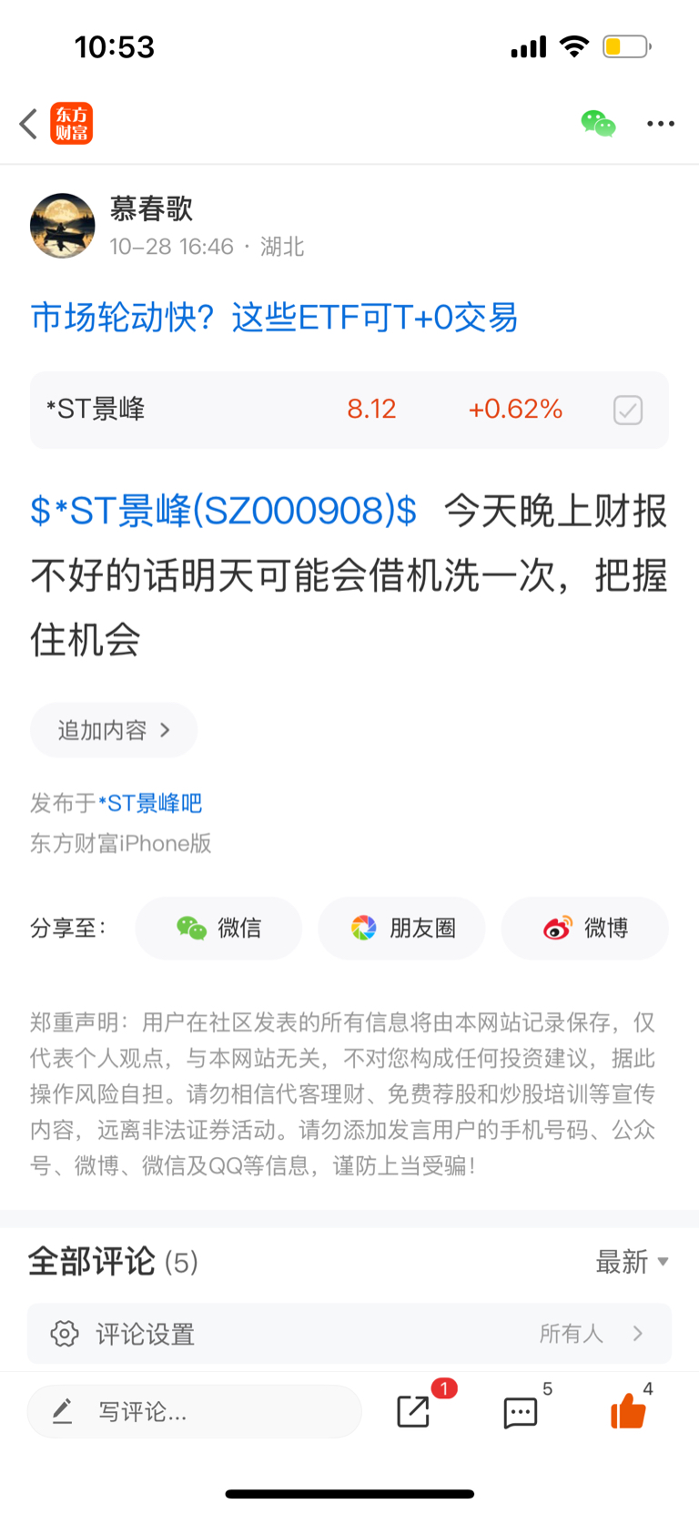 温馨提示: 1.根据《证券法》规定,禁止编造、传播虚假信息或者误导性信息,扰乱证券市场;2.用户在本社区发表的所有资料、言论等仅代表个人观点,与本网站立场无关,不对您构成任何投资建议。用户应基于自己的独立判断,自行决定证券投资并承担相应风险。《东方财富社区管理规定》