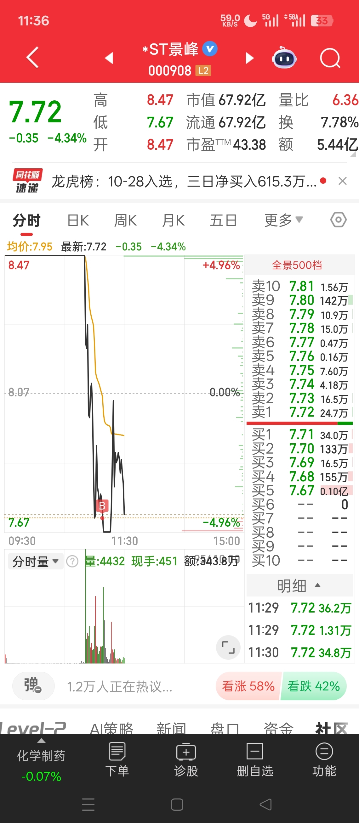 $*ST景峰(SZ000908)$ 接回来,卖了几个月了