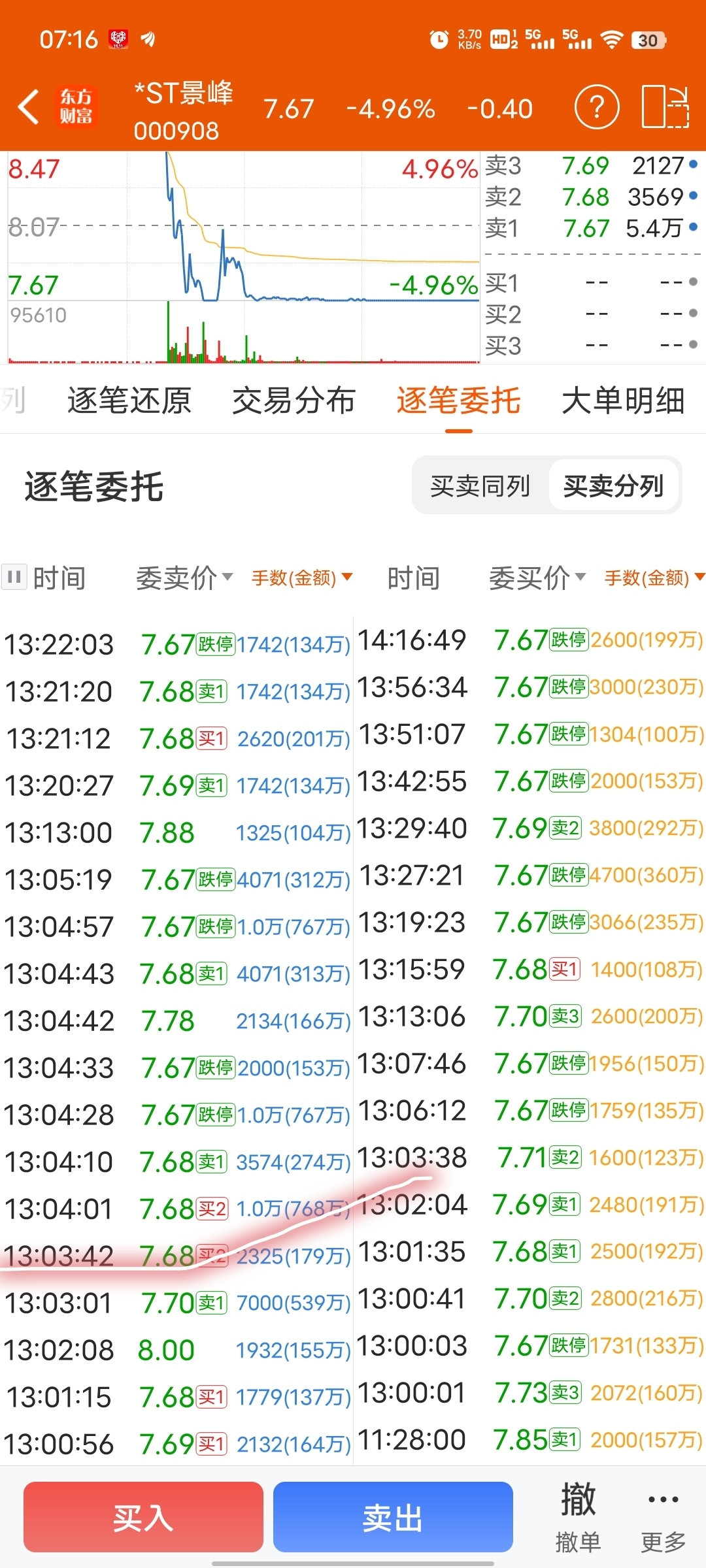 $*ST景峰(SZ000908)$ 给股吧里各位想充大师的说一下,充大师也得开个LEVEL-2,查查委托单,时间单数对的上,别连个LEVEL-2都没有,比如说昨天下午一点零04分有个一万手卖单,我就说昨天下午开盘我砸了一万手,再p个委托单,不信你们翻翻委托记录,这样不就天衣无缝了,谁都找不出毛病